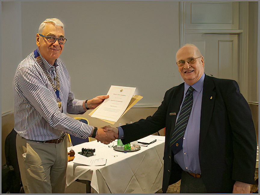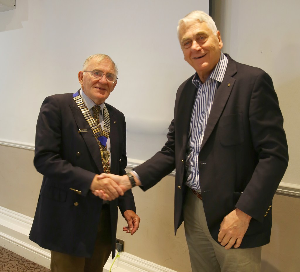 The role of President was passed from Godfrey Ball to Phil Grey. Godfrey thanked the membership and committee for their support during his year in office and welcomed Phil to the role, presenting him with the chain of office, and receiving in return his ‘past presidents’ pin.