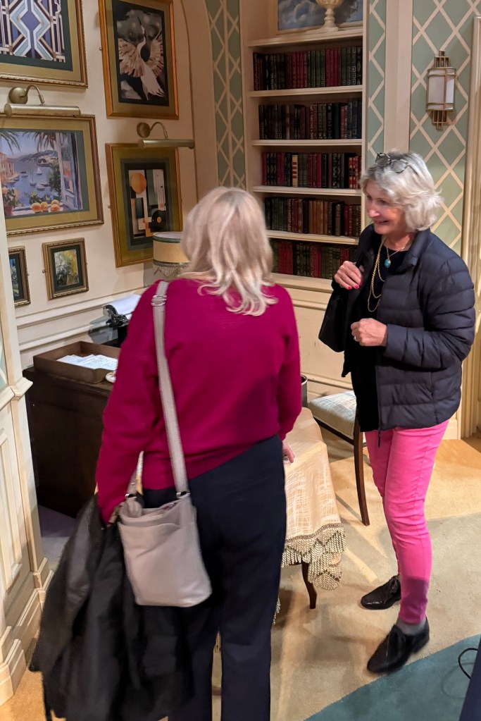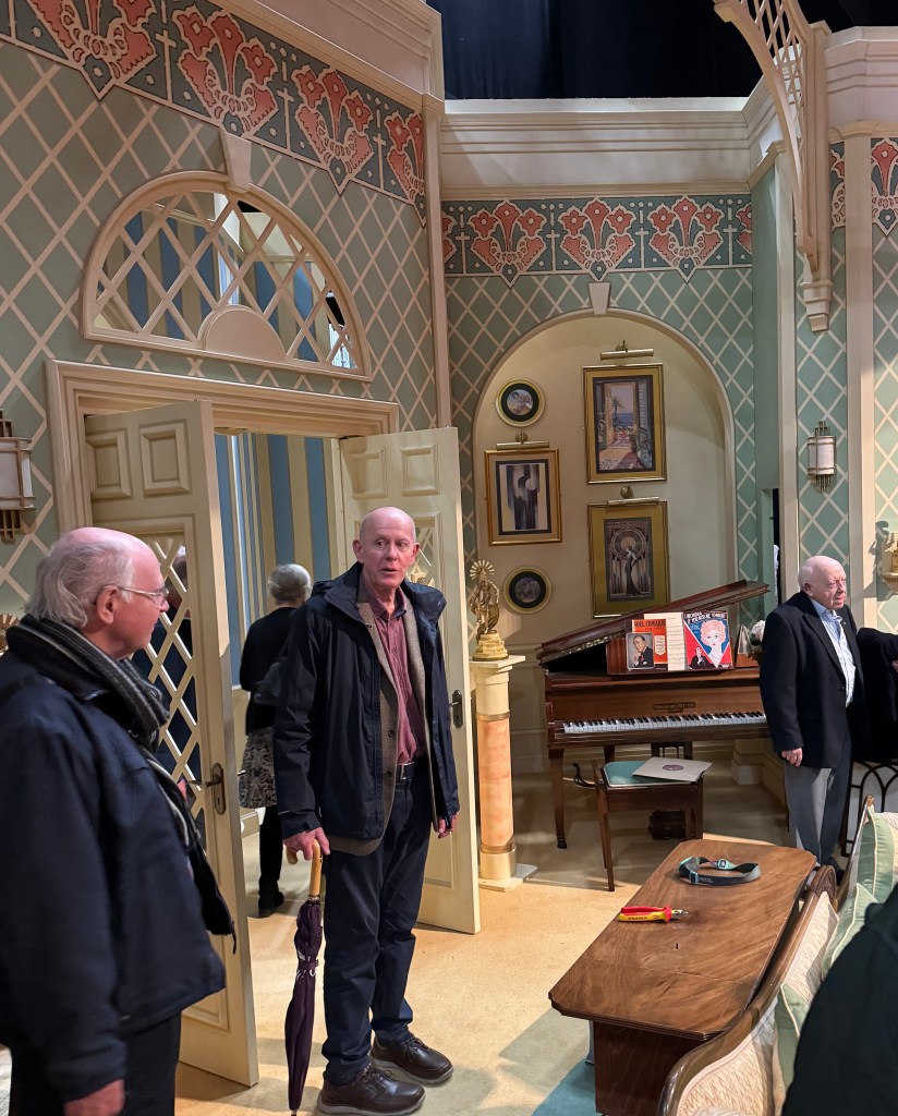 Our group was very fortunate to be guided and informed by Kate Robinson, the Playhouse’s former Creative Learning Director and our experience was really fascinating. Three highlights stand out – going on-stage on the set of the Blithe Spirit production, witnessing the scope of work and the intricacies of the costume department, and visiting the workshop where the scenery is constructed. One of our esteemed number suffered visible stage fright ….