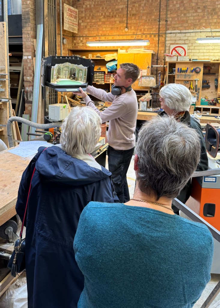 In the picture below Tim Reed (Head of Workshop) is showing us the original model of the stage set which he was tasked to bring to life. Amazing detail, artistry and execution.